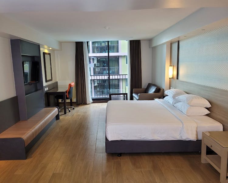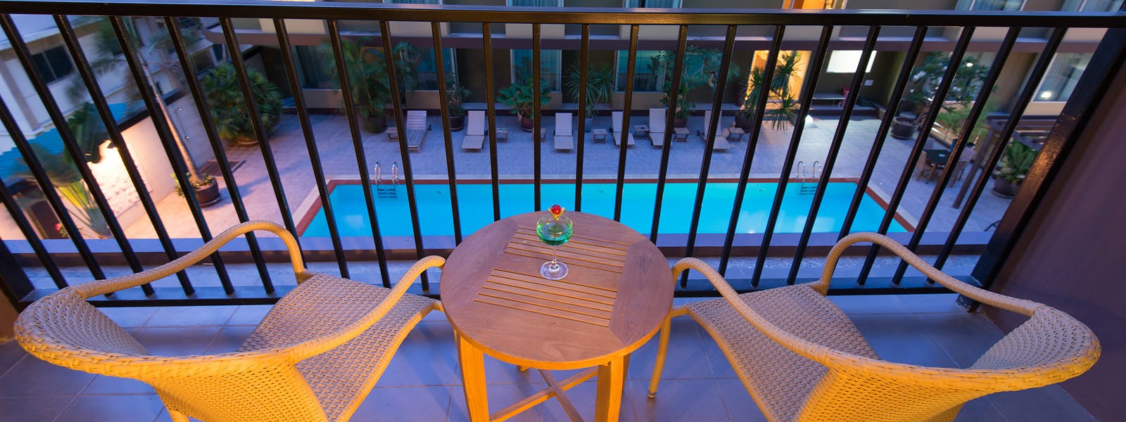 The hotel consists of twin 7-storey buildings. It also include Bloom cafe' featuring Thai fusion and International cuisines with the restaurant bar, a fitness center packed with CYBEX cardio and muscular machines and a salt-treated water system swimming pool which is located in the middle of the Twin Buildings.